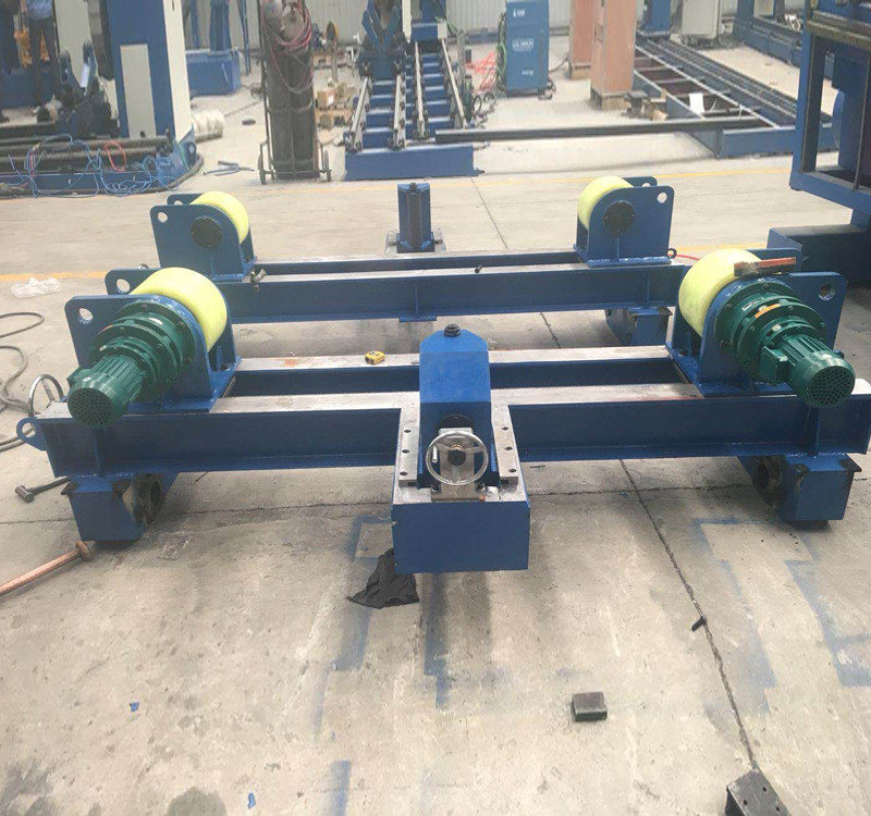 包括底座、主動滾輪、從動滾輪、支架、傳動裝置,動力裝置驅(qū)動等組成。傳動裝置驅(qū)動主動滾輪,利用主動滾輪與圓筒類工件之間的摩擦力帶動工件旋轉(zhuǎn)實現(xiàn)變位,可實現(xiàn)工件的內(nèi)外環(huán)縫和內(nèi)外縱縫的水平位置焊接,配套自動焊接設(shè)備可實現(xiàn)自動焊接,能大大提高焊縫質(zhì)量,減輕勞動強度,提高工作效率。焊接滾輪架還可配合手工焊或作為檢測、裝配圓筒體工件的設(shè)備。